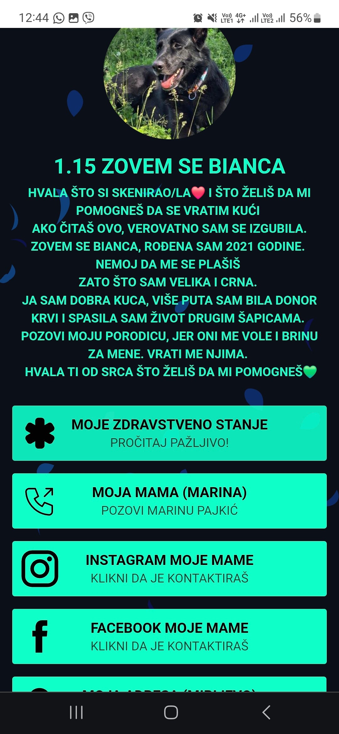 Pronalazač odmah vidi vaše kontakt podatke, instrukcije i lokaciju gde je ljubimac pronađen.